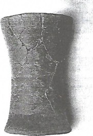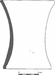 Cet objet a été tout d’abord interprété par G. Lintz comme un vase-support, destiné à porter et à caler des céramiques à fond rond. Les parties externes des rebords de cette céramique en forme de sablier sont certes usées mais sans écaille. S’il s’était agi d’un vase-support, la base aurait été écaillée et la face interne aurait été usée. Remarquons enfin qu’aucun vase à fond rond n’a été mis au jour sur le site.