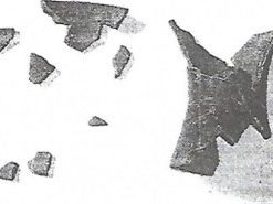 Trois coupes à bord rentrant et à lèvres en feuille de gui (type Santrot 115-119) au moins ont été isolées. La pâte est plus ou moins fine selon les vaisseaux et leurs cuissons différentes. Ainsi un groupe de tessons a subi une cuisson uniformément oxydante. Un autre porte les traces d’un enfumage régulier mais la cuisson fut faiblement oxydante puisque le noyau est brun foncé. Le troisième groupe de tessons, plus soigné est uniformément gris en surface tandis que l’intérieur est rouge à noyau gris. Ces trois vases sont trop incomplets pour que leurs formes et leurs dimensions puissent être restituées avec précision.