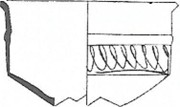 Trois coupes carénées très différentes ont pu être isolées. La plus complète (fig. 3) mesure 19 cm de diamètre maximum et sa hauteur était voisine de 11 cm. Elle a pu être reconstituée graphiquement à partir de deux groupes de tessons non jointifs. L’encolure séparée de la panse par un jonc modelé en cours de tournage est ornée d’un décor lustré formant une guirlande de boucles élancées. La couleur de sa face interne varie du gris près de la lèvre, au brun clair près du fond. Les traces de tournage sont bien visibles à l’intérieur tandis que l’extérieur a été soigneusement lissé et non poli. Si la partie supérieure est noire, la partie sous la carène est brune.